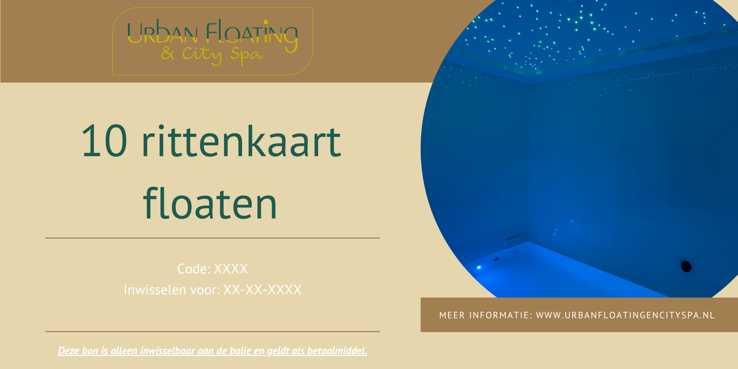 Deze 10 rittenkaart is tot twee jaar na uitgiftedatum geldig en kan alleen aan floaten worden besteed. Het tegoed is niet inwisselbaar voor contanten en is uitsluitend inwisselbaar bij onze vestiging.