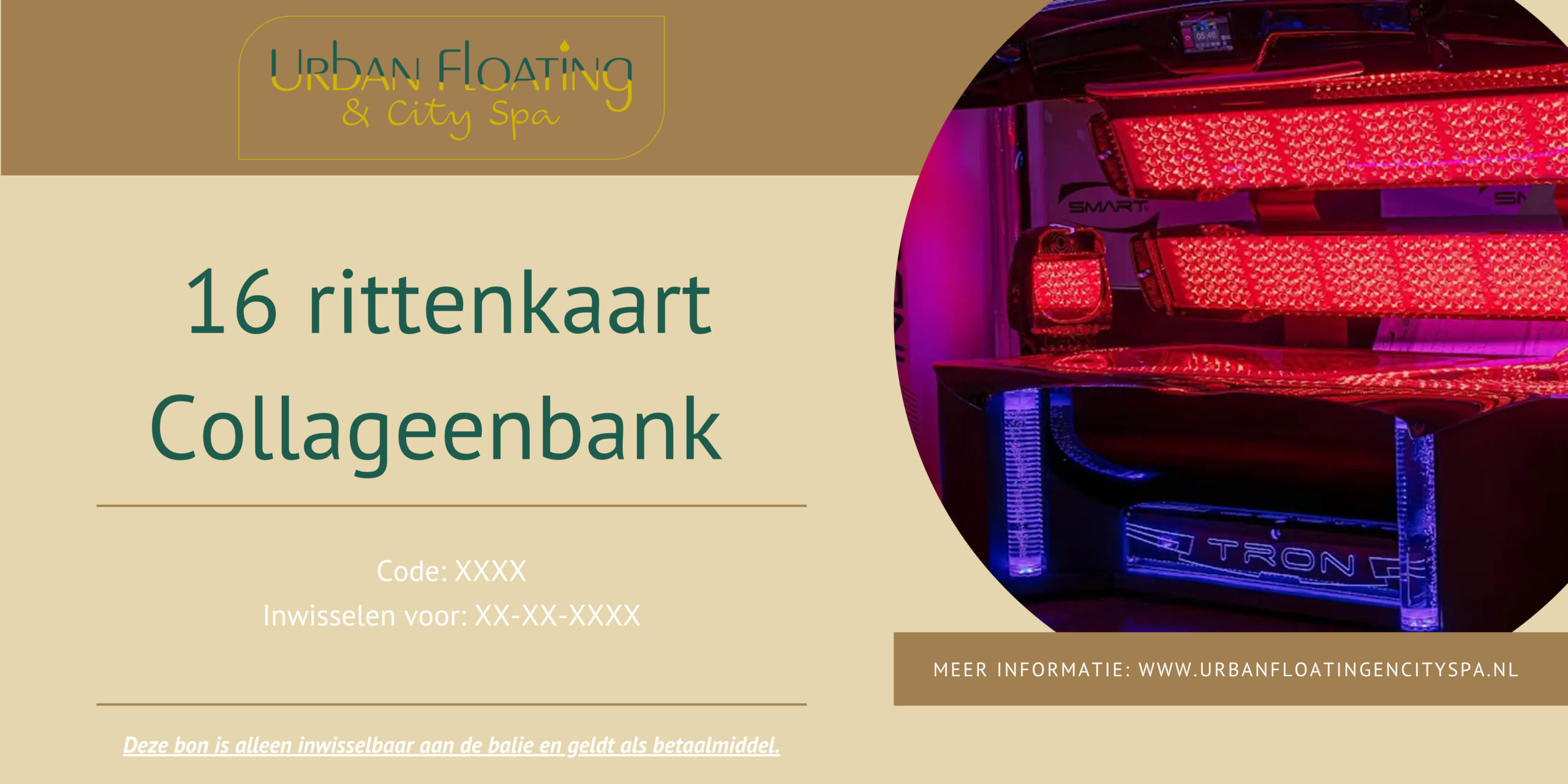 Deze rittenkaart is tot twee jaar na uitgiftedatum geldig en kan alleen aan de collageenbank worden besteed. Het tegoed is niet inwisselbaar voor contanten en is uitsluitend inwisselbaar bij onze vestiging.