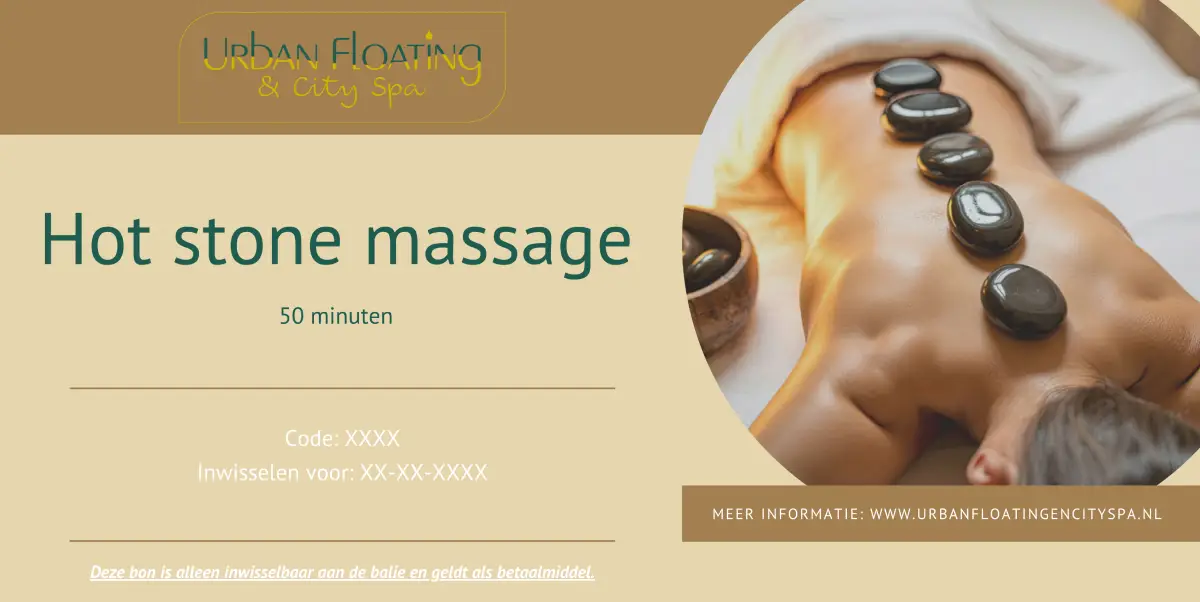 Laat spanning los en kom volledig tot rust met een heerlijke hot stone massage van 25 minuten. De warme basaltstenen glijden in combinatie met verzorgende olie over het lichaam en zorgen voor diepe ontspanning van spieren en geest. Door de aangename warmte en rustige bewegingen kom je snel in balans en ervaar je een intens gevoel van welzijn. Geschikt voor iedereen die even wil ontsnappen aan de drukte en zichzelf een moment van pure ontspanning gunt.